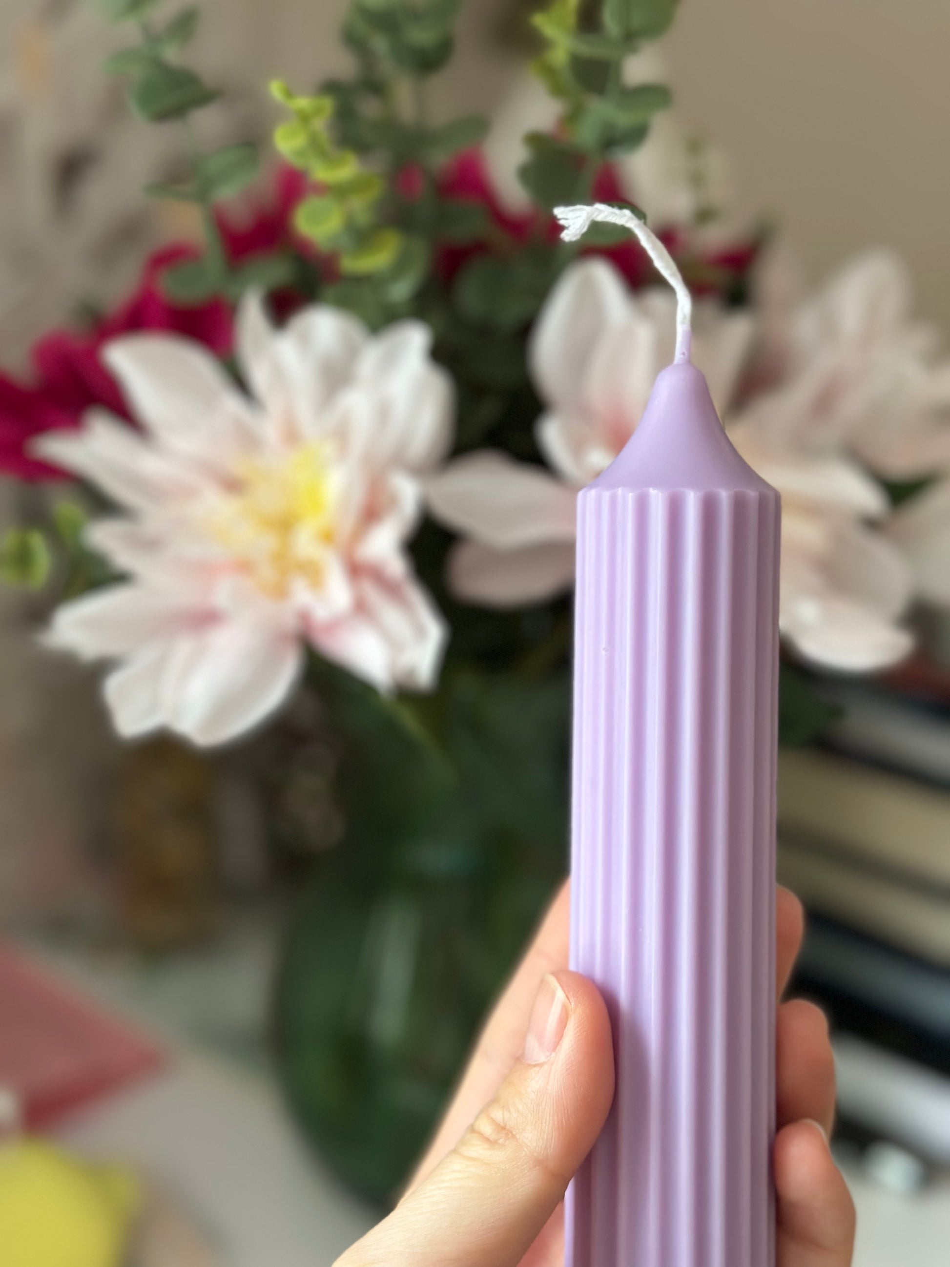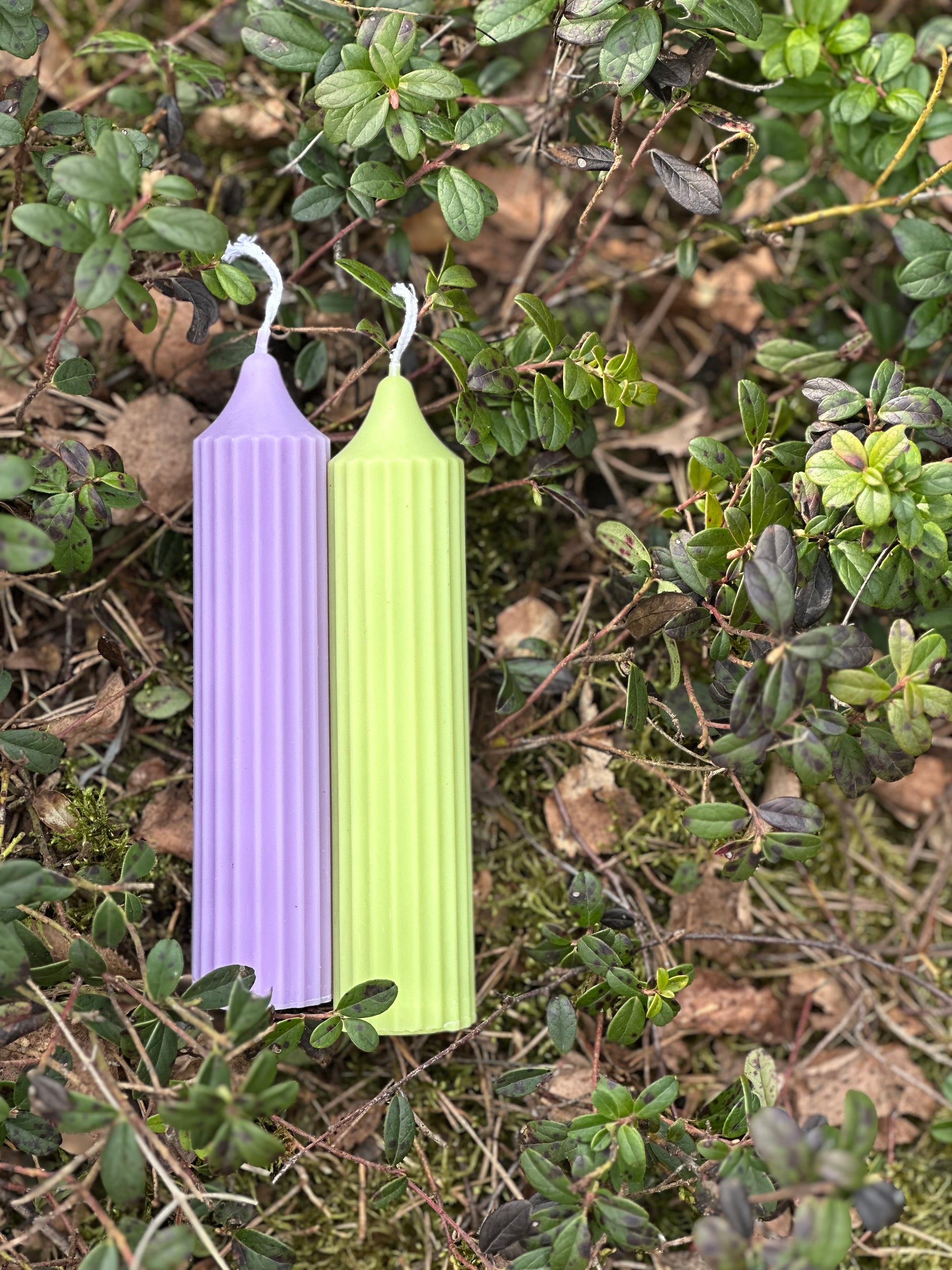 Rapšu vaska galda svece, pieejama dažādās krāsās.
